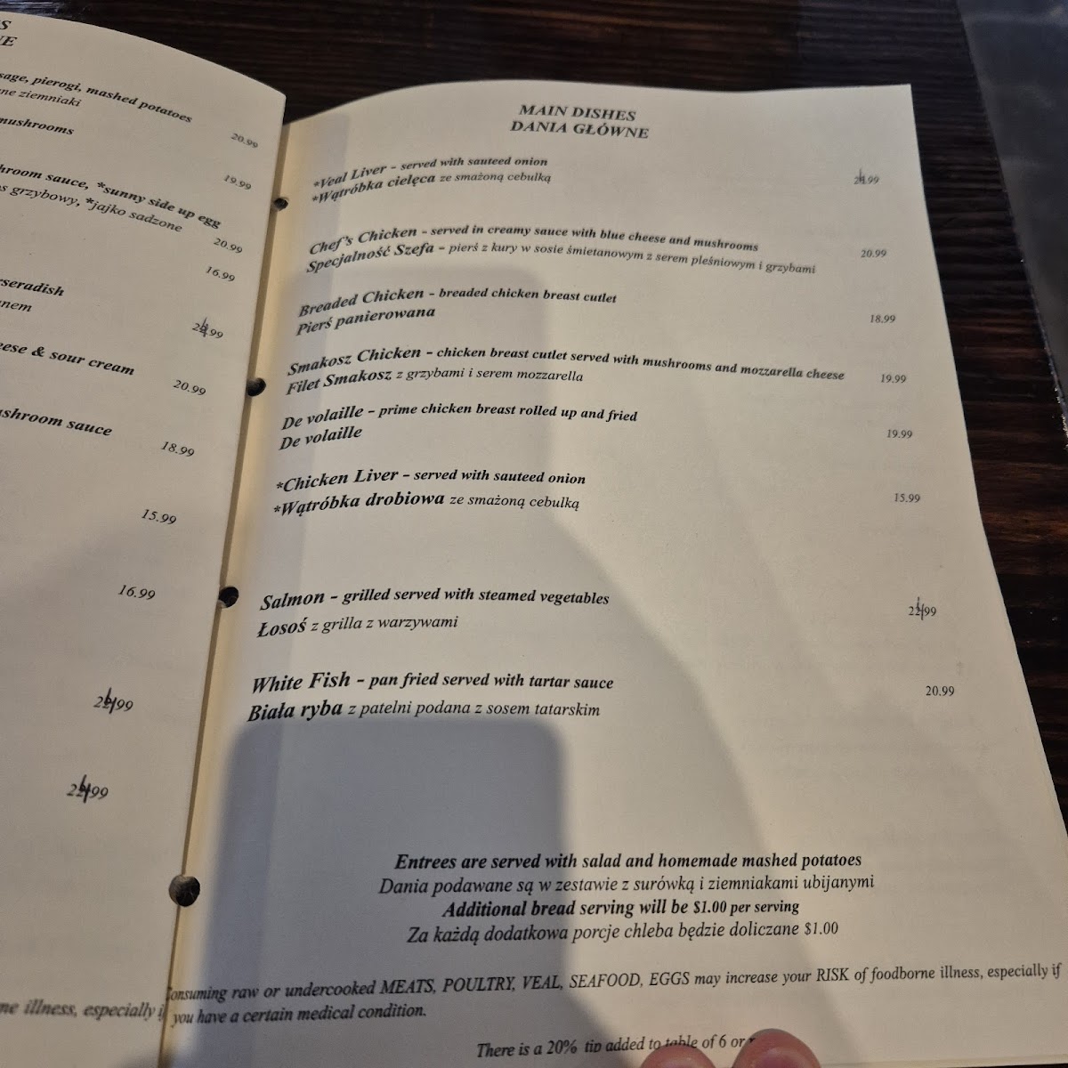 Stuffed with meat and rice served with tomato or mushroom sauce.