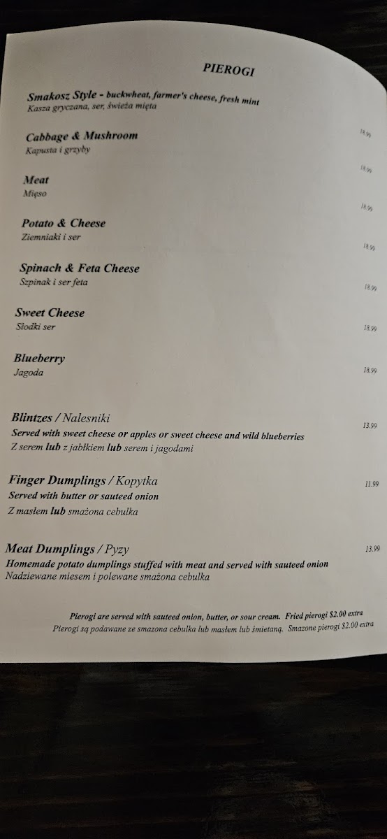 Homemade potato dumplings stuffed with meat and served with sauteed onion.